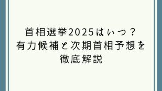 国政選挙 首相指名選挙2025はいつ?有力候補と次期首相予想を徹底解説 2025年の首相選挙は、自民党総裁選を経て行われる重要な政治イベントです。 石破首相の辞任表明により、総裁選とその後の首相選挙の日程や候補者に注目が集まっています。 今回は自民党の総裁選からの首相指名選挙という視点から、投票時期、主要候補、... 2025.09.19 国政選挙